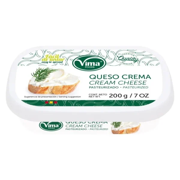 El Queso Crema Vima en presentación de 200 g es un producto lácteo pasteurizado, elaborado con leche entera y fermentado con cultivos lácticos hasta alcanzar un pH entre 4.3 y 4.8. Este proceso le confiere una consistencia untable, suave y cremosa, ideal para diversas aplicaciones culinarias.